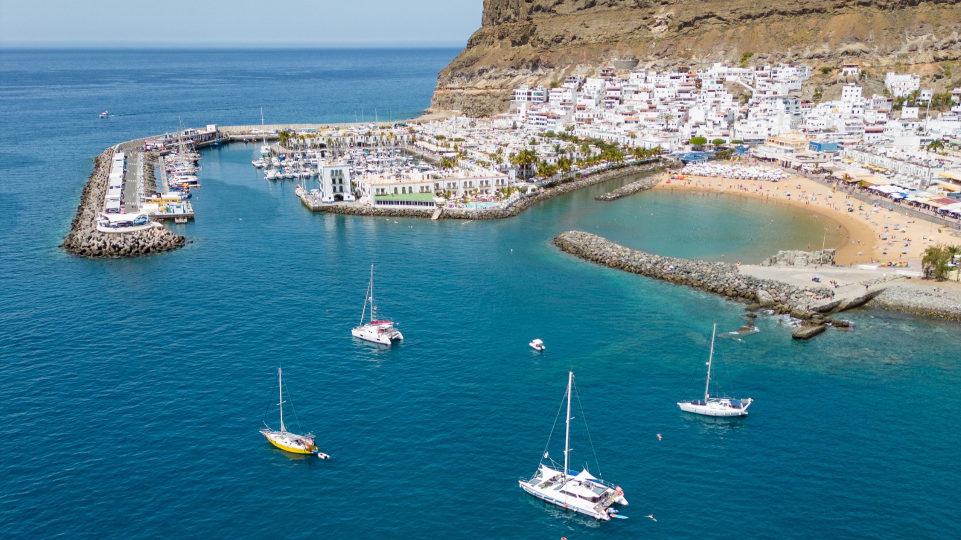 Vor dem Strand Montaña Arena in der Gemeinde Mogán liegt das künstliche Riff von Arguineguín.